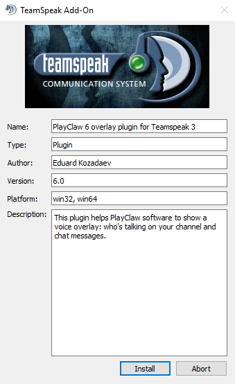 Just click on Install button and plugin will be copied to appropriate folder and Teamspeak 3 client will know this information on the next start.